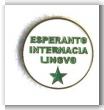 Klarigo: La vortoj "Esperanto internacia lingvo" super la verda stelo, sur blanka fono; kun kluĉilo.